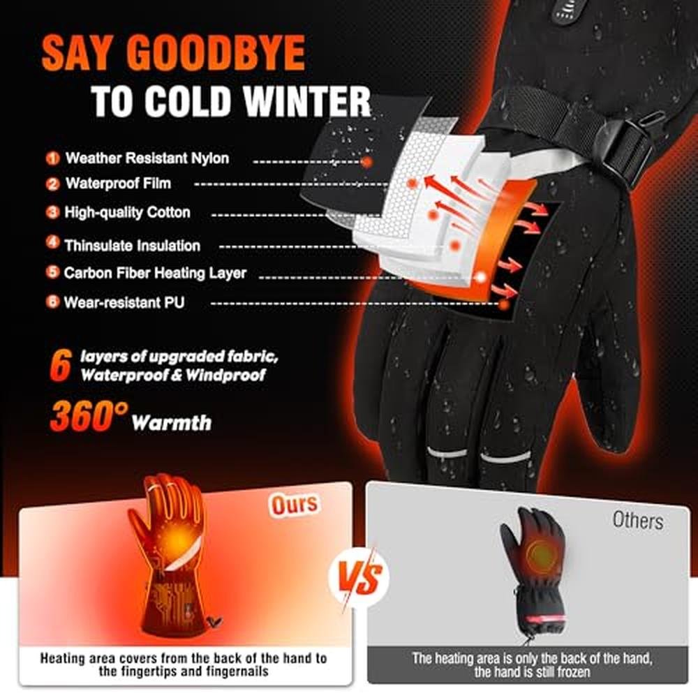 Heated Gloves | Rechargeable Electric Waterproof Thermal Warm Work Winter Gloves | Ultimate Hand Warmers for Cold Weather