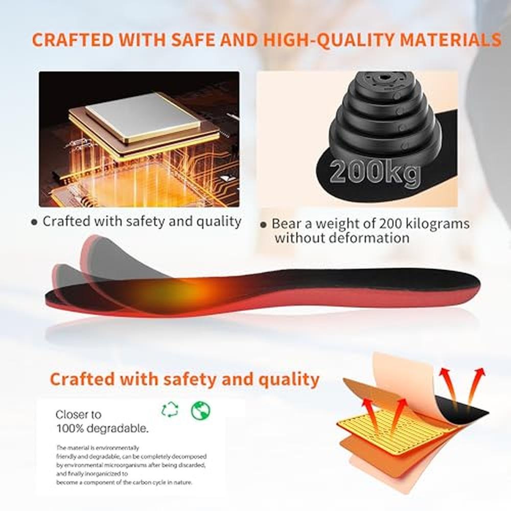 Heated insoles men and women with App Control, Easy USE. They are suitable for a wide variety of winter outdoor activities including skiing, fishing, jogging, hunting, cycling, hiking, motorcycling, walking dogs, running, shoveling snow, and removing ice and snow from car windows. The insole size is adjustable, providing a customized fit for maximum comfort and support. This makes them suitable for different shoe sizes and specific activities. Whether outdoors or at home, these insoles keep your feet warm and comfortable. The bandage battery is easy to use. Open the elastic band and fix it on the calf as needed. The bandage is elastic, so adjust the tightness to avoid discomfort. Don't overstretch it to prevent loss of elasticity. It has Velcro wool and hook surfaces. With a 65CM long charging cable and lightweight battery, our heated insoles and bandage battery are a great solution for all your outdoor pursuits.heated insoles for hunting heated insoles for skiing heated insoles for cycling heated insoles for climbing heated insoles for camping heated insoles for icehouse