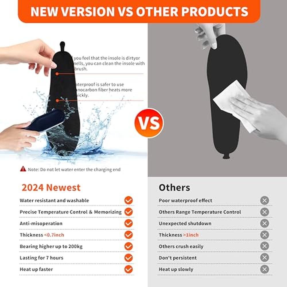 - Heated Insoles for Men Women with APP Control heated insoles for hunting .Scan the QR code and download the APP. or Searchfor"HEATING INSOLE" to download without registration. Control on/off, adjust 86F - 158F temperature and up to 120 minutes timing via smartphone easily. Manual control via battery compartment button. Detailed user guide provided. Enjoy warmth and comfort.