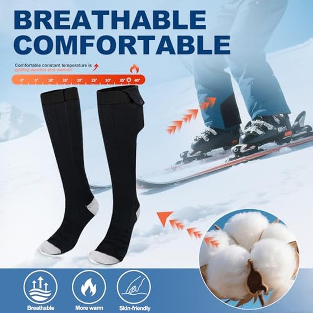 Heated Socks, Electric Heated Socks for Men Women Luxuriously soft and stretchy, these heated socks are woven from a high-grade polyester blend that breathes as it warms. Engineered with an ergonomic fit and targeted heating zones, they turn cold feet into cozy comfort all winter long. Ideal for men and women alikeor as a heartfelt gift for Mom and Dad.