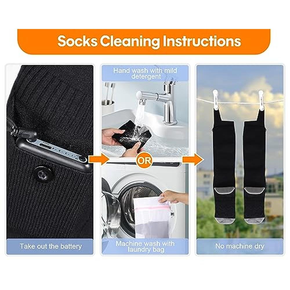 - Safe Heating Covers Whole Foot: Electric socks adopt the new generation of carbon fiber 3D heating technology can be heated quickly and fast heating in 10 seconds. which is scattered in the fabric and covers the whole toe area, blending in with the socks and almost not feeling its presence heated socks are heating uniform and temperature stability. The electric rechargeable heated socks which will stimulate your blood circulation, let your feet no longer be cold and stiff