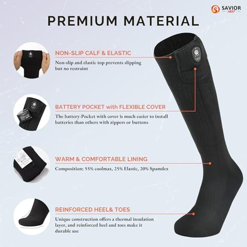 Heated Socks with App Control for Men Women, SAVIOR HEAT Electric Rechargeable Battery Heating Socks Washable Foot Warmer for Winter Skiing Hunting Fishing Hiking (Medium)