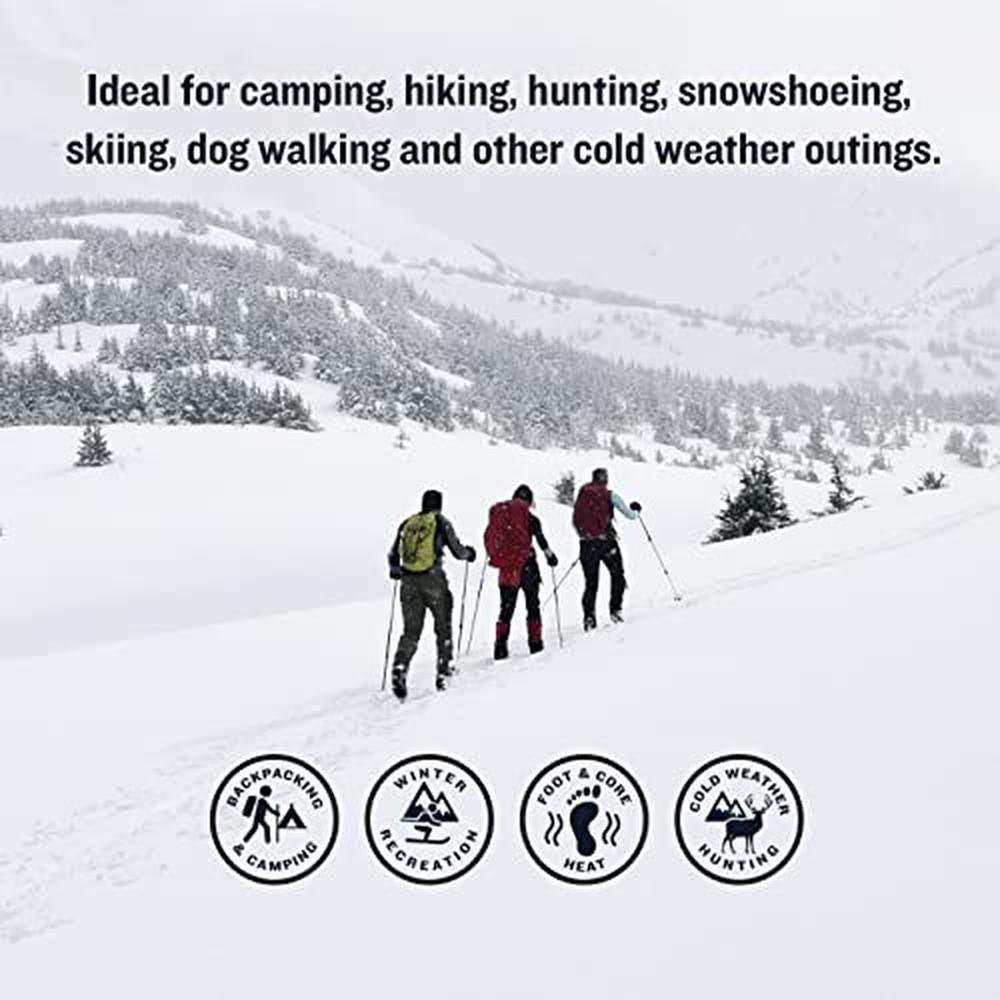 - Easily activated by removing from packaging and exposing to air; ideal for camping, hiking, hunting, snowshoeing, skiing, dog walking and other cold weather outings