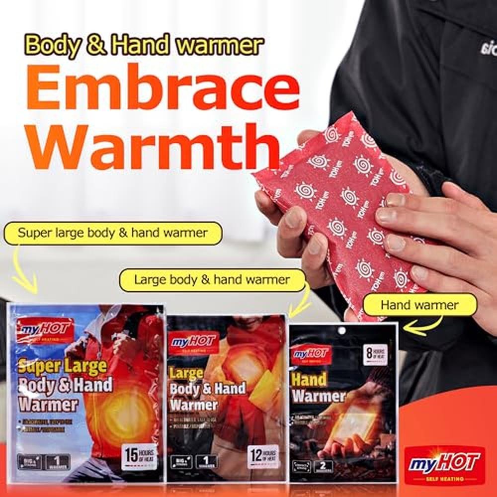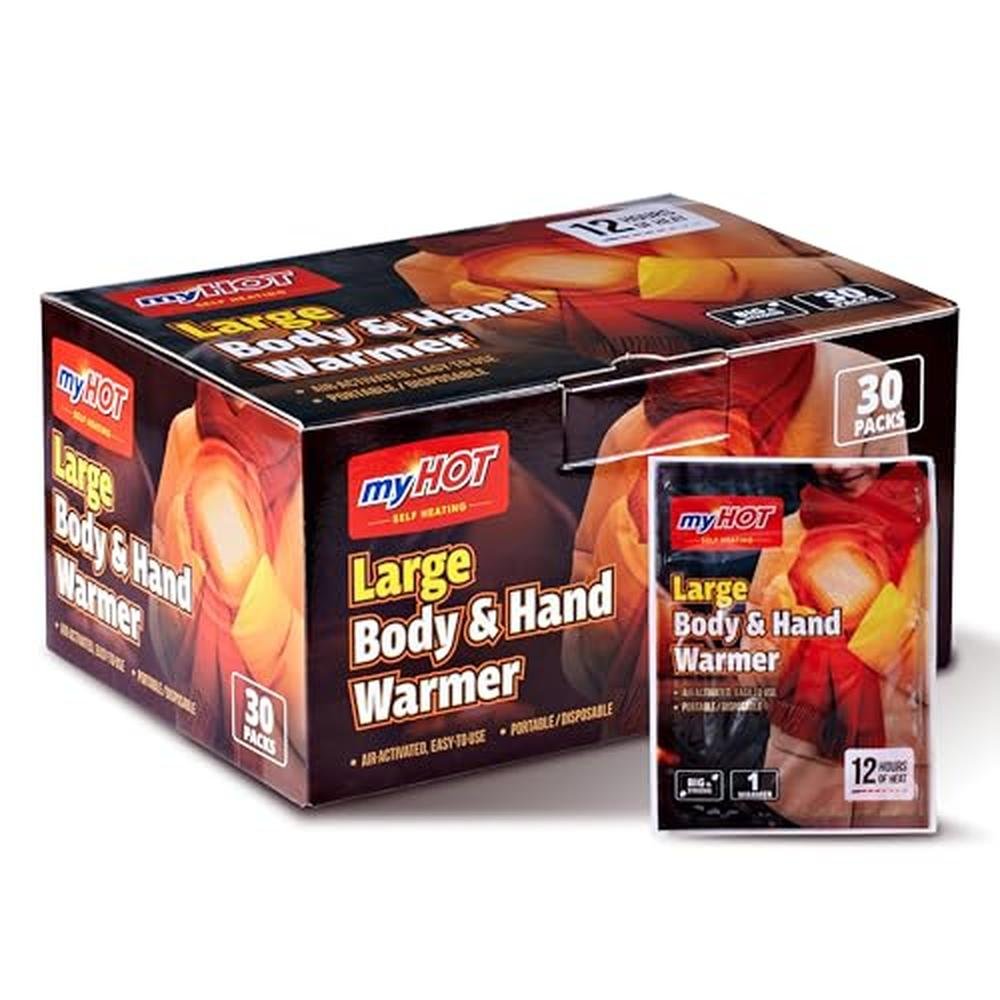 MyHOT Body & Hand Warmer | Large Size 30Pack | Up to 15 Hours Long Lasting Heat