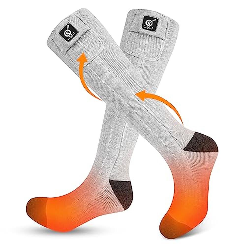 SNOW DEER Heated Socks for Men Women, 7.4V Rechargeable Battery Electric Ski Foot Warmer for Hunting Fishing Camping Hiking SkiingGrey,L