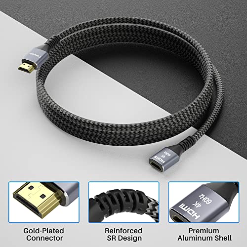 4K HDMI Extension Cable | 40 Feet Braided Extender Male to Female Cord | Pure Copper 3D 4K 60Hz 2160p 1080p HDR HDCP 2.2 ARC