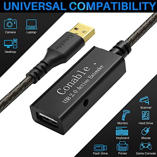 Active USB Extension Cable | 50 Feet USB 2.0 A Male to Female Cord | High-Speed Connection with Signal Booster