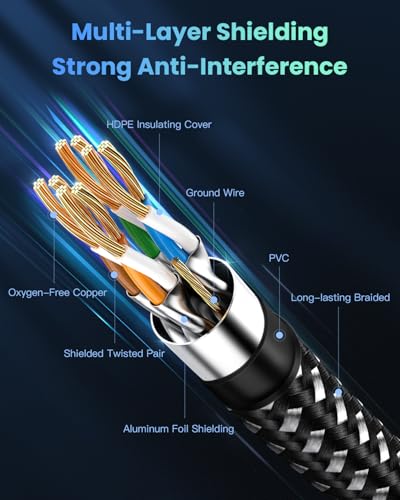 Busohe Cable | BUSOHE Cat 8 Ethernet Cable 30 FT High-Speed 40Gbps 2000Mhz Braided Network Internet Cable | Gold Plated RJ45 Connector