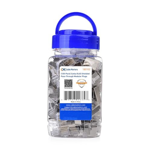 Experience the ultimate in Ethernet connectivity with the Cable Matters 100-Pack Cat 6A Shielded Pass Through RJ45 Connectors, featuring 50µ gold plated contacts for reliable and high-speed data transfer. These premium-grade connectors are designed for use with solid or stranded S/FTP Ethernet cables, providing superior performance and shielding against electromagnetic interference. With their Cat 6A rating, these connectors support speeds of up to 10Gb/s, making them ideal for applications that require fast and stable connections. Whether you're setting up a home network or a commercial IT infrastructure, these high-performance connectors offer a cost-effective and efficient solution. Elevate your networking experience with the Cable Matters 100-Pack Cat 6A Shielded Pass Through RJ45 Connectors, engineered to deliver exceptional quality and reliability.