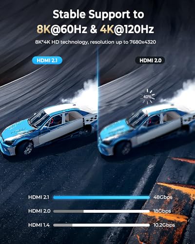 - Supports up to 48Gbps for seamless 8K 60Hz and 4K 120Hz transmission