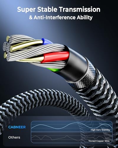 Indulge in the future of entertainment with the CABNEER 8K HDMI Cable, meticulously designed to deliver unparalleled video and audio quality. As a premium high-end electronics product, this 15ft HDMI 2.1 cable supports up to 48Gbps, enabling seamless transmission of 8K resolution at 60Hz and 4K at 120Hz. With its advanced features, including HDR, eARC, and HDCP 2.2/2.3, this cable is perfect for connecting your HDTV, laptop, monitor, or PC. Elevate your gaming experiences, cinematic adventures, and crystal-clear visuals with this superior HDMI cable. Explore the possibilities of immersive entertainment, redefining the way you engage with your favorite content. Unlock the full potential of your devices with this top-tier cable, carefully crafted to provide the finest video and audio quality. Discover a new world of entertainment, where every detail is refined, and every moment is exquisite.