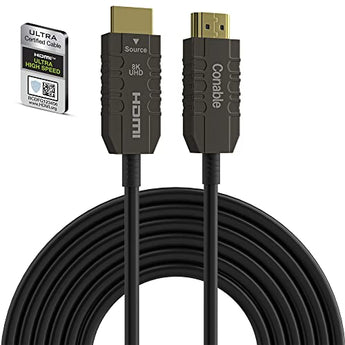 Indulge in the ultimate viewing experience with our Certified 8K Fiber Optic HDMI Cable 50FT, a top-tier, high-end HDMI cable that redefines performance and reliability. As a cable certified by reputable authorities, this ultra-high-definition cable supports a wide range of resolutions, including 8K@60Hz, 4K@120Hz, and 2K@144Hz, making it perfect for gaming consoles like Xbox, Series X, and PS5, as well as laptops, Switch, and UHD TVs. With a bandwidth of 48Gbps and support for HDR, HDCP 2.2, and 2.3, Dolby Atmos, and eARC, this premium-grade cable delivers unparalleled video and audio quality. Elevate your entertainment experience with our sophisticated, high-performance cable, designed to provide a seamless and immersive experience. Explore the world of ultra-high-definition with our certified 8K fiber optic HDMI cable, engineered to meet the highest standards of quality and reliability.