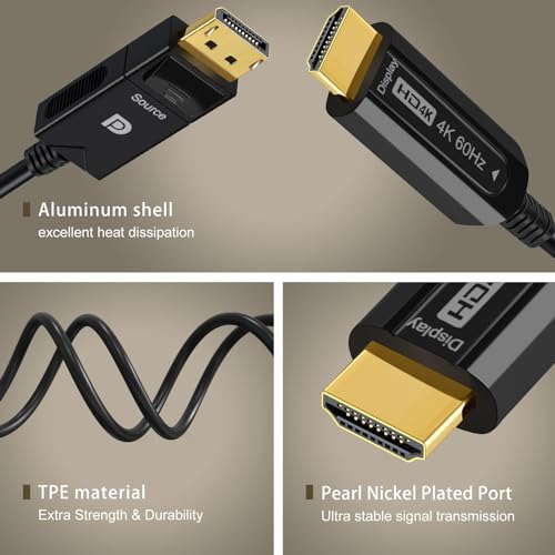 - Designed for long-distance connectivity, with a 50FT uni-directional DP to HDMI fiber optic cable, ideal for digital signage, medical imaging equipment, and home theaters