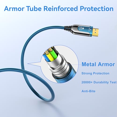 Male DGHUMEN HDMI Cables | DGHUMEN 30Ft Fiber Optic 8K 48Gbps | Ultra High Speed Metal Armor