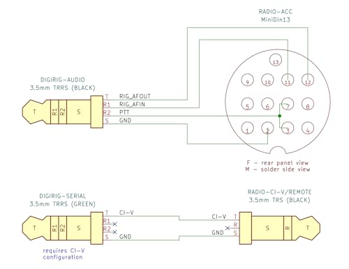 - Digirig Mobile 1.6 cables feature MiniDin13 and 3.5mm TRRS connectors for seamless connectivity