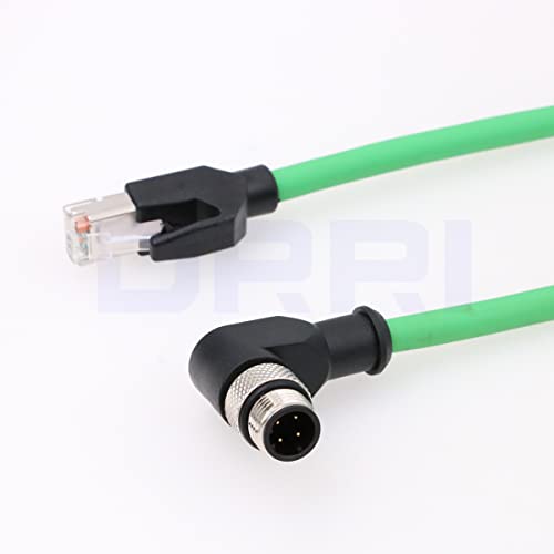 Ethernet DRRI Cable | Premium Right Angle M12 4pin D-Code Male to RJ45 Waterproof Ethernet Shielded Cat5E | Industrial Grade