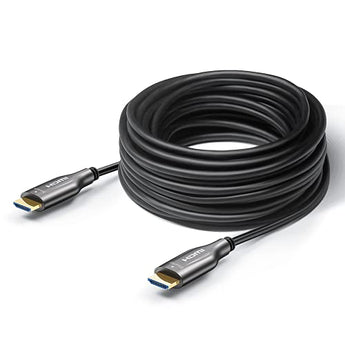 Indulge in exceptional video and audio quality with the EVAIO Fiber Optic HDMI Cable, expertly designed to deliver breathtaking 4K resolutions at 60Hz with support for HDR10 and Dolby Vision. This 100-foot HDMI 2.0 cable boasts an impressive 18Gbps bandwidth, ensuring seamless transmission of your favorite content. With its slim and flexible design, it's perfect for home theaters, gaming setups, and professional AV installations. The EVAIO Fiber Optic HDMI Cable is equipped with the latest technologies, including ARC (Audio Return Channel), 3D support, and HDCP 2.2 for secure content protection.