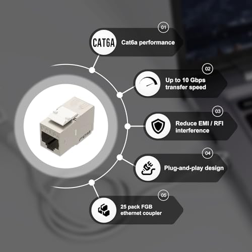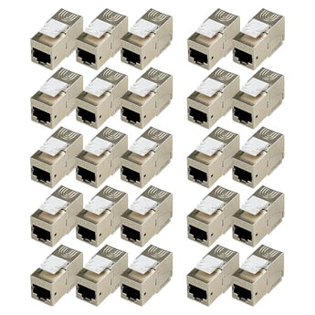 Indulge in high-performance networking with our premium FGB 10Gbps Cat6a Shielded Keystone Jacks, expertly designed to deliver reliable and efficient connections. These sophisticated, toolless modular jacks feature an integrated shutter for enhanced protection and are available in a convenient 25-pack. Whether you're seeking to elevate your networking capabilities or explore top-rated products, our FGB jacks are trusted by customers for their exceptional quality and durability. We offer superior, affordable options without compromising on performance, making us a go-to destination for those seeking heavy-duty, high-end networking solutions or discounted deals.