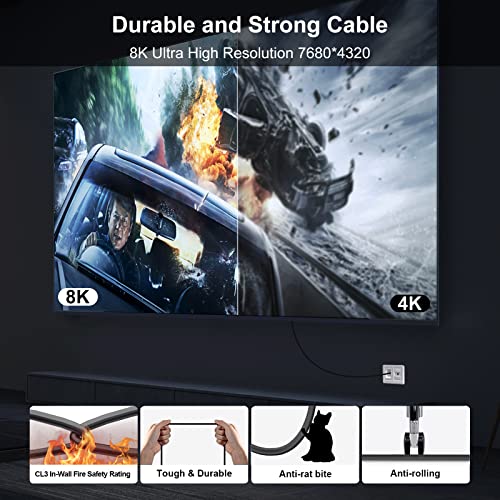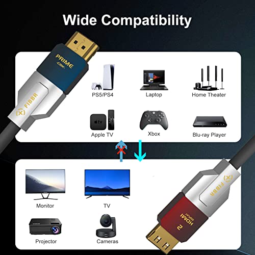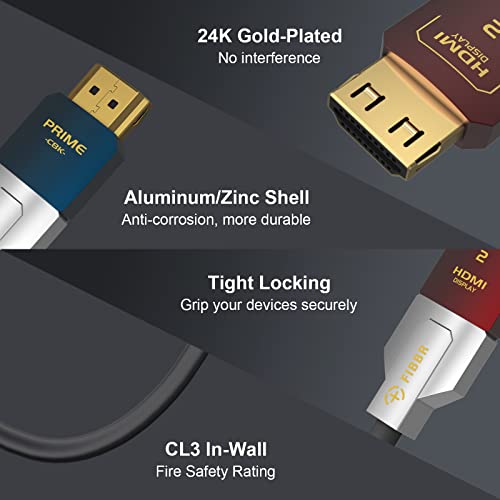 FIBBR 8K HDMI Fiber Optic Cable | 16FT/5M 48Gbps High-Speed In-Wall CL3 Rated | Supports 8K 60Hz 4K 120Hz 144Hz HDR10 eARC Dolby