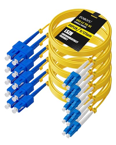 Experience the ultimate in fiber optic connectivity with the Foboiu 5m 5 Pack OS2 Single Mode LC SC Fiber Patch Cable, expertly designed to deliver reliable and high-speed connections for your fiber optic network. Our premium fiber patch cables are crafted with top-quality materials, featuring a single-mode fiber core with a diameter of 9/125um and a yellow jacket for easy identification. With UPC/UPC connectors and a duplex jumper configuration, these fiber patch cords ensure minimal signal loss and optimal performance. Whether you're looking for high-quality fiber patch cables or searching for the best fiber patch cable price, our products offer an unbeatable combination of quality and affordability. Ideal for applications requiring high-bandwidth and long-distance transmissions, our fiber patch cables are perfect for LAN, SAN, fast Ethernet, and fiber channel applications.