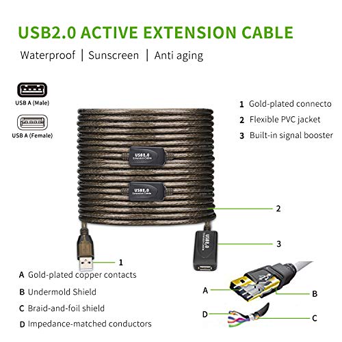 Extension Cable | GGMTY 100 FT USB 2.0 Type A Male to A Female Active Repeater | High-Speed 480 Mbps