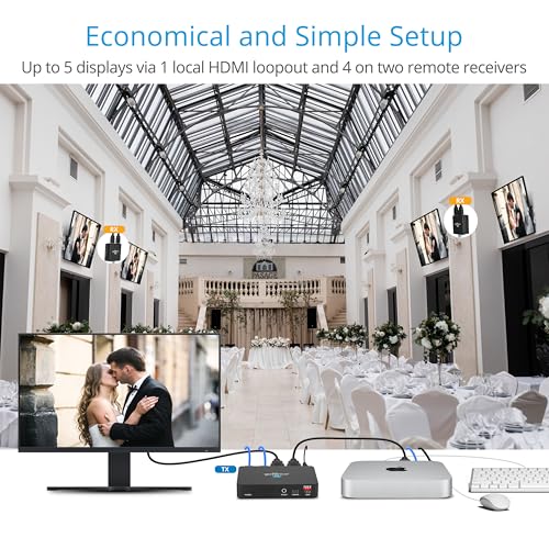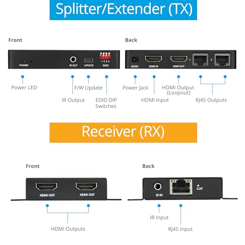 - Extends HDMI signals up to 164ft (50m) over CAT6/7 with dual HDMI outputs on each receiver