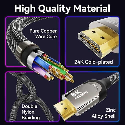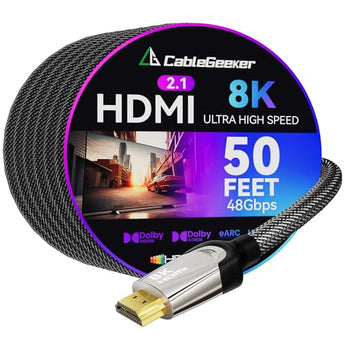 Long 8K HDMI 2.1 Cable | 50FT Ultra HD Lead | High-Speed Cord with 48Gbps and eARC Support