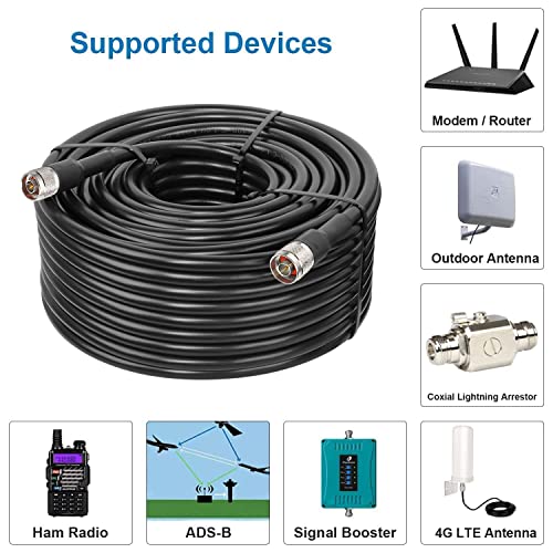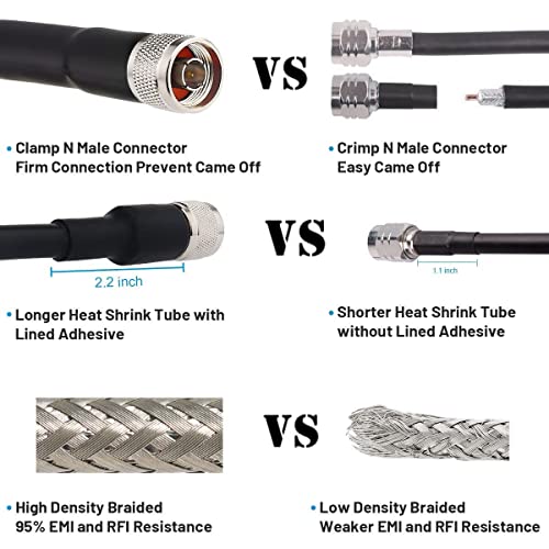 Cable Male | MOOKEERF-N 150ft Ultra Low Loss Coax Cable 50ohm N Male to N Male | Ultra-Low Loss Signal Transmission
