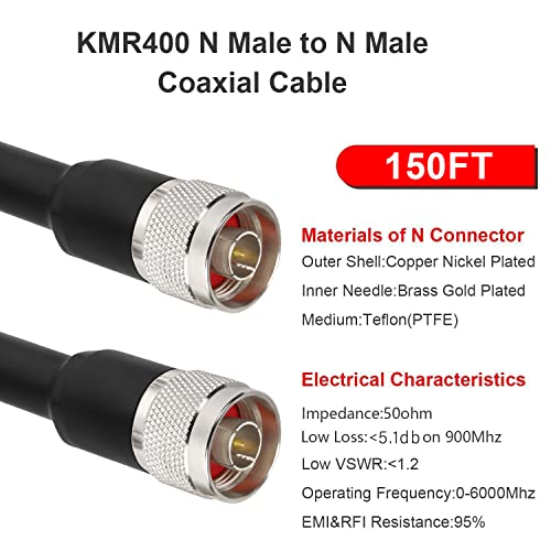 - The MOOKEERF-N 150ft Ultra Low Loss Coax Cable features a durable N Male to N Male connector for reliable and stable connections