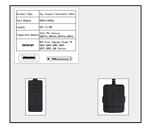 Experience seamless connectivity with our One Invisible Connection Cable, specifically designed for Samsung Neo QLED 8K Smart TV models QN95A, QN700A, QN800A, and QN900A. As a compatible replacement for BN39-02688A, E343577, 21302, and N23UC0870, this 8FT (2.5M) silver cable ensures a reliable and high-quality connection. Note that this cable is not compatible with Samsung Frame TV models. With our One Invisible Connection Cable, you can enjoy a clutter-free viewing experience, perfect for those who value a sleek and organized entertainment setup. For Samsung One Connect box setup and Samsung One UI users, this cable is a premium-grade solution. The cable features a proprietary connector on the TV end and an HDMI connector on the One Connect Box end, ensuring a secure and reliable connection. The cable is designed to support high-speed data transfer rates up to 10.2 Gbps, making it capable of transmitting 4K Ultra HD and HDR video formats.