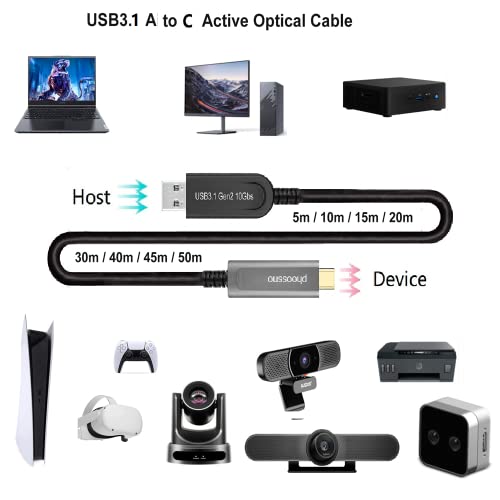 Phoossno CMP | Phoossno UL CMP Plenum Rated USB A to C Fiber Optical 3.1 Cable 10Gbps 65FT | High-Speed Data Transfer