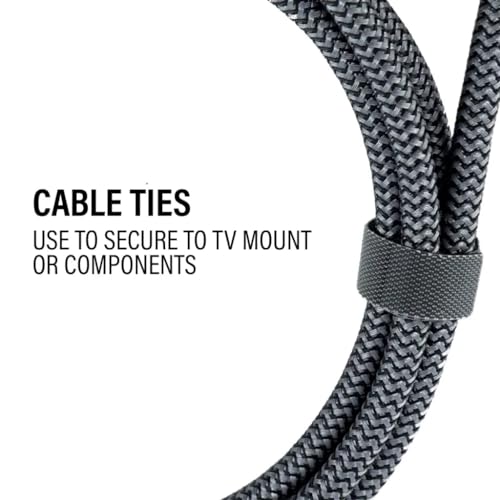 Discover the advanced features of the Sanus Ultra High Speed 8K HDMI 2.1 Cable, including a gold-plated connector that gives the highest level of signal conductivity and resists corrosion, a sure grip connector that provides a firm grip to prevent cable damage, and a cotton braided jacket that protects the cable and maintains flexibility. Additionally, the cable ties can be used to secure the cable to your TV mount or components, keeping your setup organized and clutter-free.