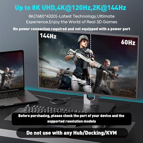 • Supports resolutions up to 8K@60Hz, 4K@120Hz, and 2K@144Hz for a superior viewing experience