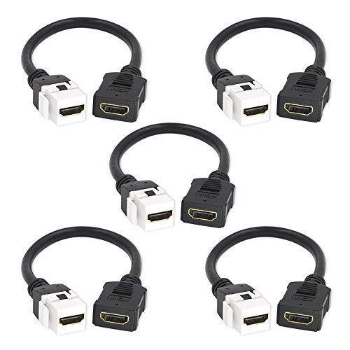 Keystone Jack | VCE 5-Pack HDMI Female to Female Pigtail Cable | 4K HD Wall Plate Solution