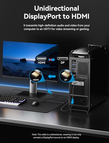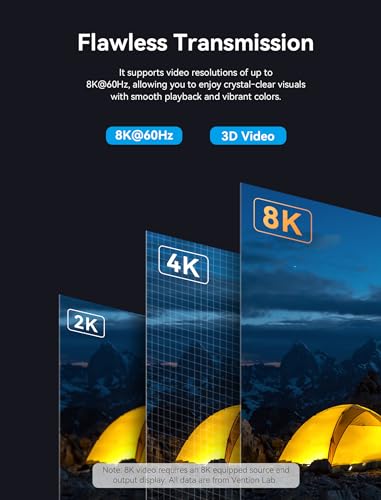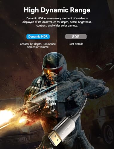 Immerse yourself in exceptional visual fidelity with the VENTION DisplayPort to HDMI 8K cable, meticulously crafted to provide seamless connectivity between your device and display. This 6FT DP 1.4 to HDMI 2.1 uni-directional braided cord supports breathtaking resolutions up to 8K@60Hz, 4K@144Hz, and 2K@165Hz, making it perfect for gaming, video editing, and other high-performance applications. With HDCP 2.3, HDR 10, and DSC technology, you can enjoy immersive, high-dynamic-range visuals with minimal latency. Compatible with a wide range of devices from top manufacturers like HP, Lenovo, Dell, AMD, and NVIDIA, this VENTION DisplayPort 1.4 to HDMI 2.1 cable offers advanced features, supporting high resolutions up to 8K at 60Hz and various options for 4K, 2K, and 1080p. With enhanced user experience, it provides superior bandwidth at 32.4Gbps, dynamic HDR, and compatibility with high refresh rates, making it a future-proof solution for optimal graphics card and display performance. The cable is thoughtfully designed with reinforced materials, including a non-locking design, 28AWG tinned copper, and triple shielding, ensuring stable signal transmission and durability. Its plug-and-play convenience, compatibility with various monitors, and a worry-free assurance from the VENTION brand, with prompt customer support, make it a reliable choice for seamless and high-quality connectivity.