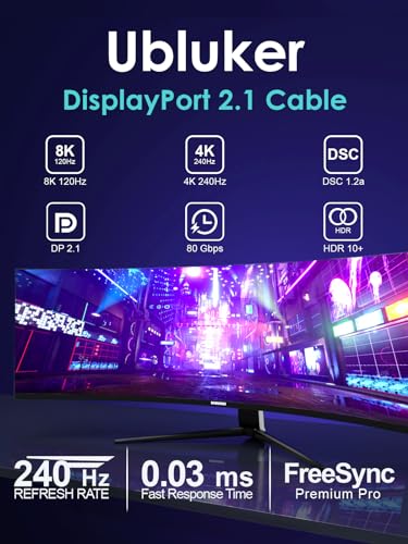 DisplayPort 2.1 Cable | VESA Certified 16K 60Hz 8K 240Hz Ultra High Bit Rate UHBR20 | Premium High-End Graphics Solution