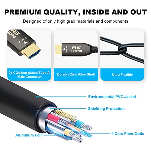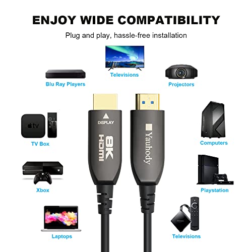100ft Fiber Optic Cable | Yauhody Real 8K HDMI 2.1 Ultra High Speed 48Gbps | Unparalleled Video Quality