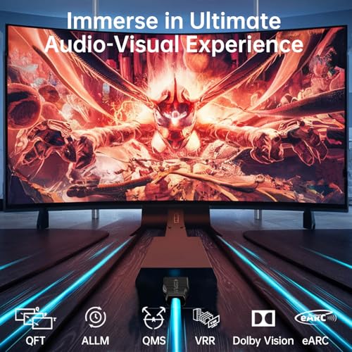 Elevate your entertainment and gaming setup with the 8K Fiber Optic HDMI Cable. Supporting 48Gbps high-speed transmission, it delivers stunning resolutions of 8K60Hz and 4K120Hz, with Dynamic HDR, 3D, and immersive audio formats like DTSX, Dolby Atmos, and eARC. Perfect for gamers, it features Variable Refresh Rate (VRR) to eliminate screen tearing and lag, ensuring smooth gameplay. Compatible with HDMI 2.1 and backward compatible with 2.0, 1.4, it works seamlessly with laptops, Blu-ray players, Xbox Series X, RTX 3080, 3090, 3090, and more. Built with advanced fiber optic technology, this durable, slim, and lightweight cable resists interference, offers superior performance, and is ideal for long-term use. The 33ft length is perfect for home setups, while the 3ft, 6ft, 10ft options are perfect for daily use to connect PC, desktop, display, or projector, delivering ultimate performance and future-proofing your system.