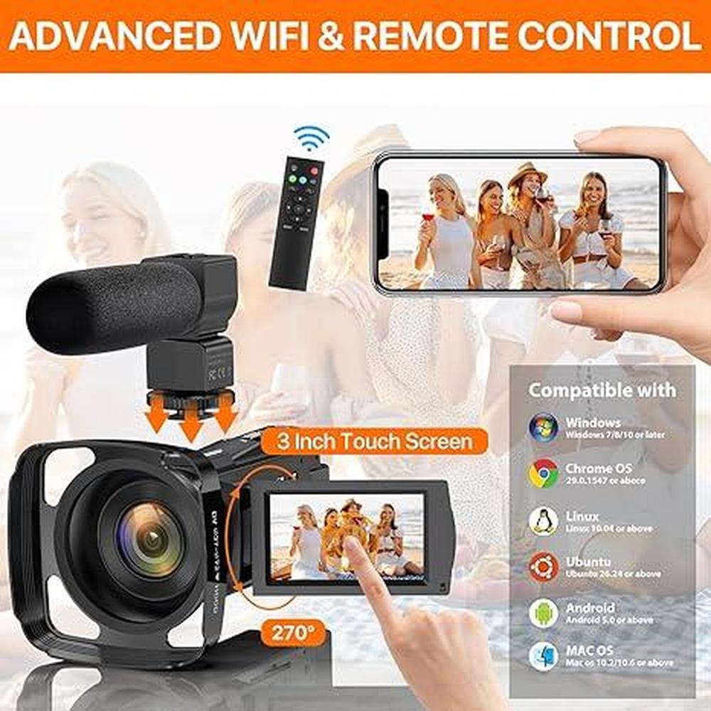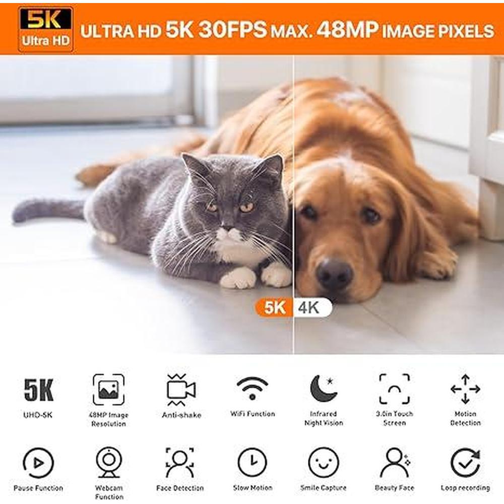 Special Features | Video Camera for youtube, handheld digital Camcorders video camera, Camcorder, Digital Video Camera, Vlogging camera with flip screen, IR Video Camera with Microphone,5k camcorder video camera with wi-fi, Infrared night vision camera, blogging cameras, broadcast video camera wireless, wireless streaming video camera 5k, camera with remote control, video and picture camera, hand held video recorder,camera for video and photography,video podcast equipment,live streaming camera for sports, Ultra Full HD 5K Video Camera, WIFI connection, IR Night Vision, Built-in microphone, 270 degree rotatable touch screen, Webcam Function, Digital zoom in & zoom out, Anti-shaking, Audio recording, Pause Function, Continuous shooting, Time-lapse shooting, Slow motion, Shoe mount, USB input, MIC input, HD Output, AUTO OFF, Self-timer, Remote Control, Compact, date Imprint, high visibility, image stabilization, |