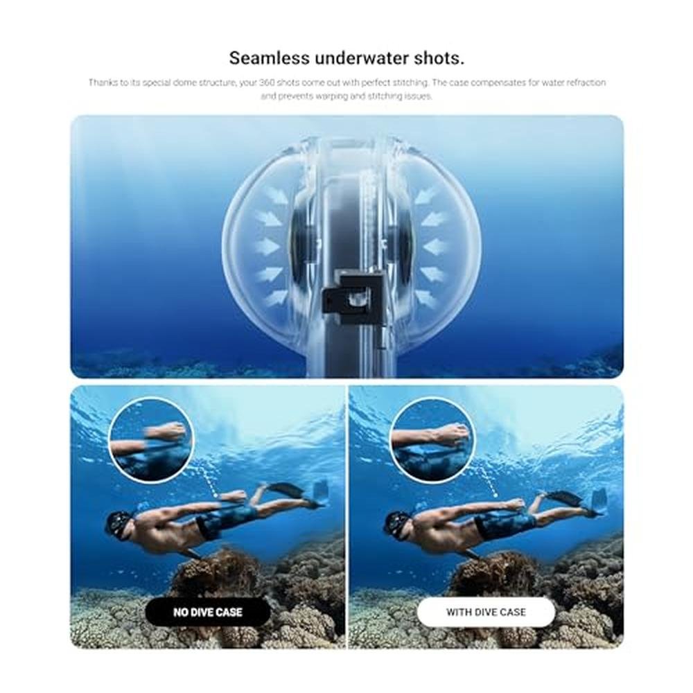 Take your underwater photography to new depths with the Insta360 X3 Invisible Dive Case, a revolutionary waterproof housing designed for the Insta360 X3 camera. With a depth rating of up to 50m (164ft), this sleek and durable case lets you capture stunning footage and photos in the water with ease. Perfect for scuba diving, snorkeling, or simply experimenting with underwater photography, the Insta360 X3 Invisible Dive Case is a game-changer for creators and enthusiasts alike.