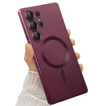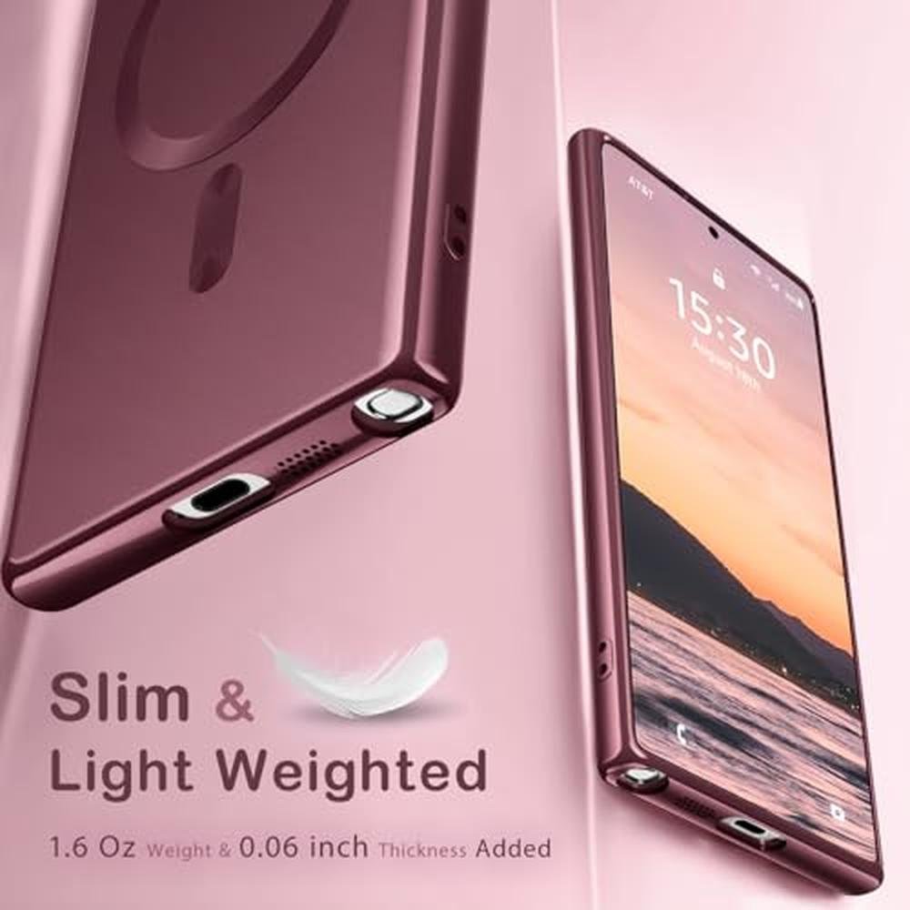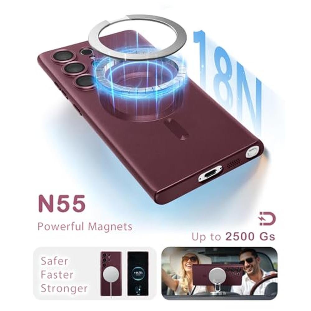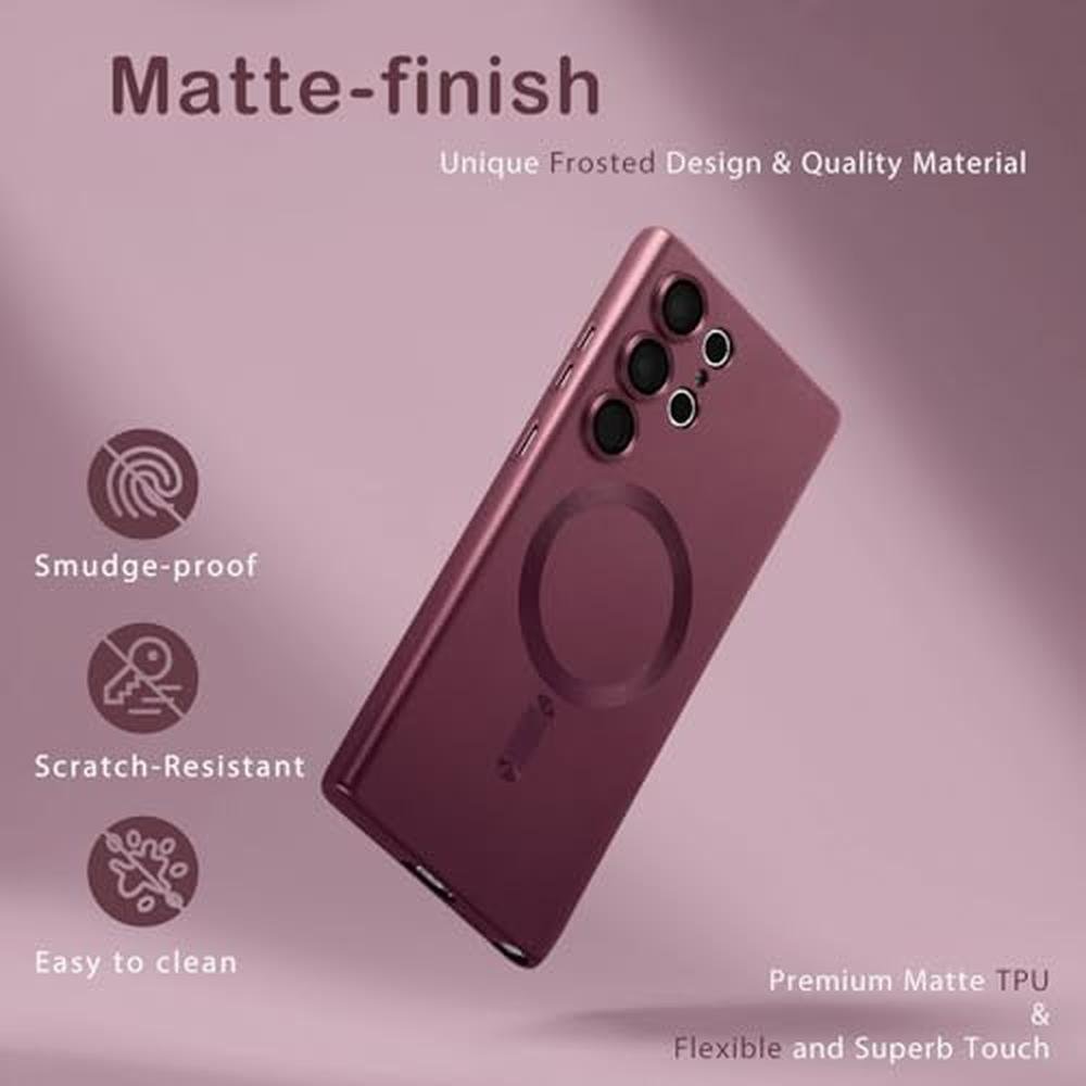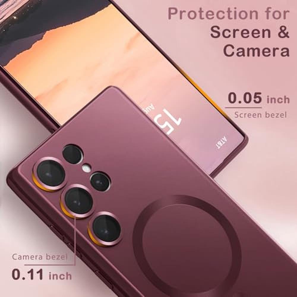 Amzfield Magnetic for Samsung Galaxy S25 Ultra Case for Women Men Girls [Compatible with MagSafe] [Camera Lens Protector] Matte Cute Slim Soft Silicone Bumper Shockproof Metallic Phone Case, Burgundy