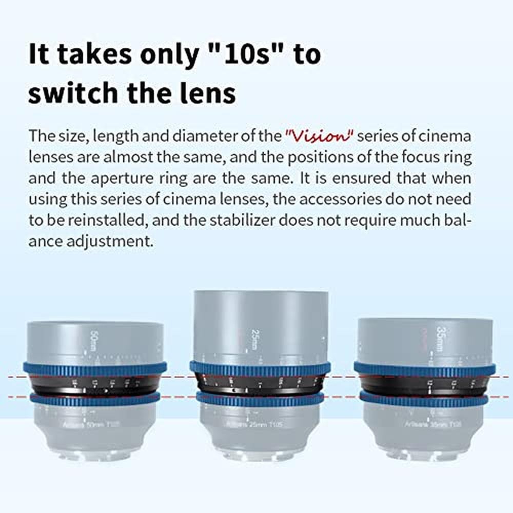 - T1.05 Large aperture, Declicked aperture design,ensure that the video screen exposure is silky,T1.05 aperture,hight image quality can be main-tained in low-light and low-illumination environments.