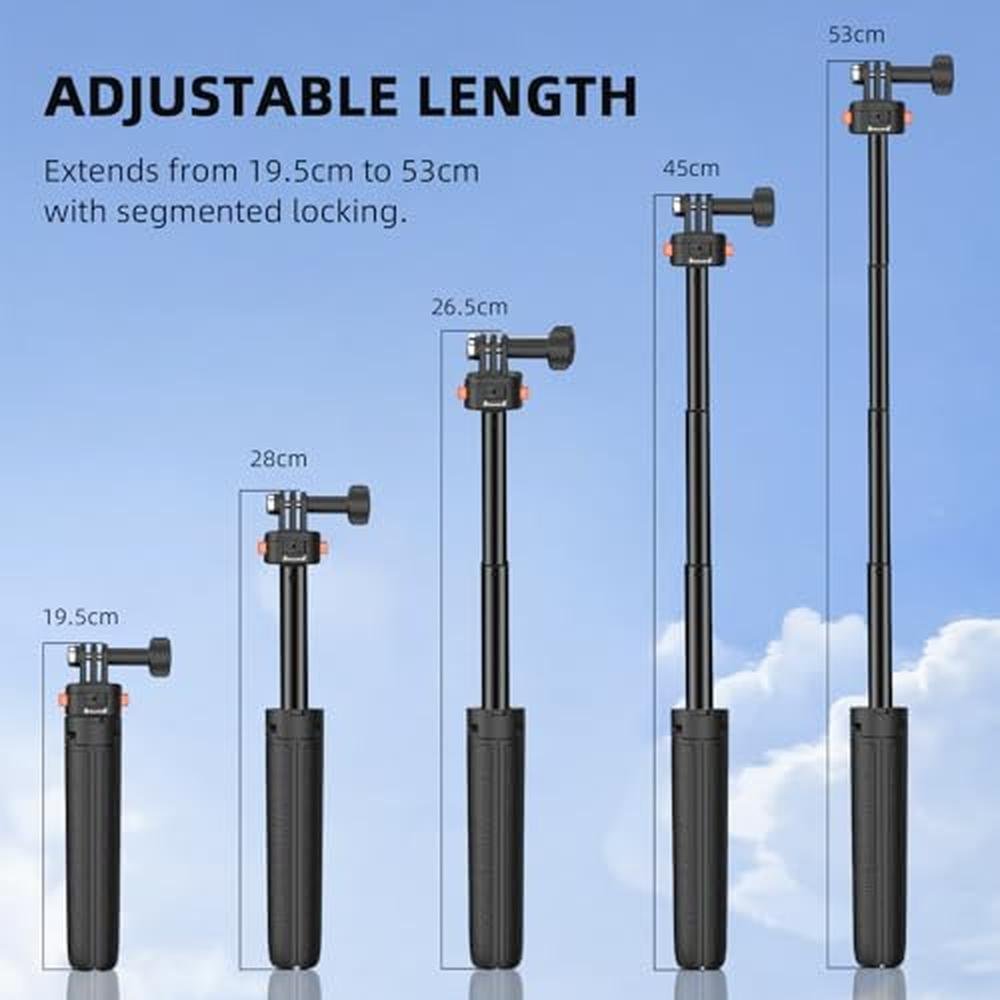 Experience the ultimate in action camera footage with our 20" Osmo Pocket 3 Tripod, expertly designed for action cameras like the DJI Action 5 Pro and Insta360 X4, X5, and X3. As a top-tier accessory for action osmo enthusiasts, this mini table desk extendable stand provides a stable and versatile base for capturing smooth, professional-grade video. With its quick release 1/4'' screw, you can easily mount and detach your camera, making it perfect for vlogging and selfie shots. Whether you're a professional filmmaker or an action osmo 5 pro user, this handheld selfie stick is a must-have accessory