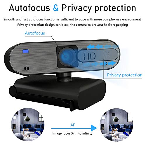 This newest web camera is great for video chat, online class, video conferencing, gaming, live streaming and blogging. It has a high resolution and fast transmission rate, and it is also nice-looking and portable. This webcam enables you to share happy moments online with your family and friends, learning through online class, video conferencing, streaming and recording. With its HD 1080p COMS color sensor, highest effective pixel 1920x1080, and max frame rate of 30 frames per second, this webcam provides an exceptional video experience. The built-in omni-directional microphones reduce noise, and the automatic focus ensures a clear image. The low-light correction and 76-degree viewing angle make it perfect for various lighting conditions.