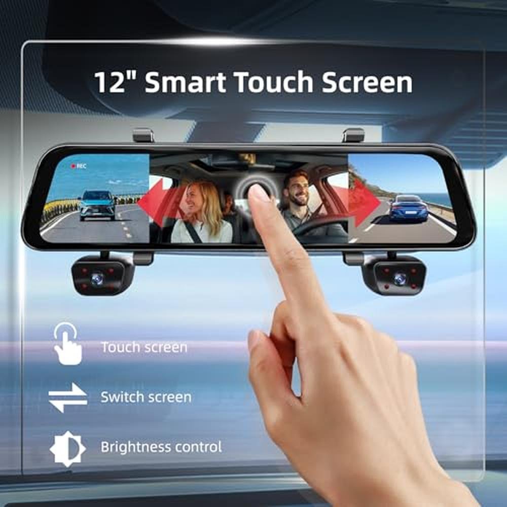 Indulge in the pinnacle of in-car surveillance with our 2025 Rear View Mirror Camera, boasting a 12-inch touch screen and 360-degree view. As a premium camera rear view mirror, this 4-channel dash cam provides an exhaustive view of your surroundings, including front, rear, and interior cameras. With Wi-Fi, APP, and GPS capabilities, you can effortlessly monitor and track your vehicle's activity. The rear camera also features IR night vision and a complimentary 128GB SD card, ensuring you never miss a moment. Whether you're seeking the finest rear camera for cars or a reliable rear view mirror camera for vans, this sophisticated device is designed to elevate your driving experience.