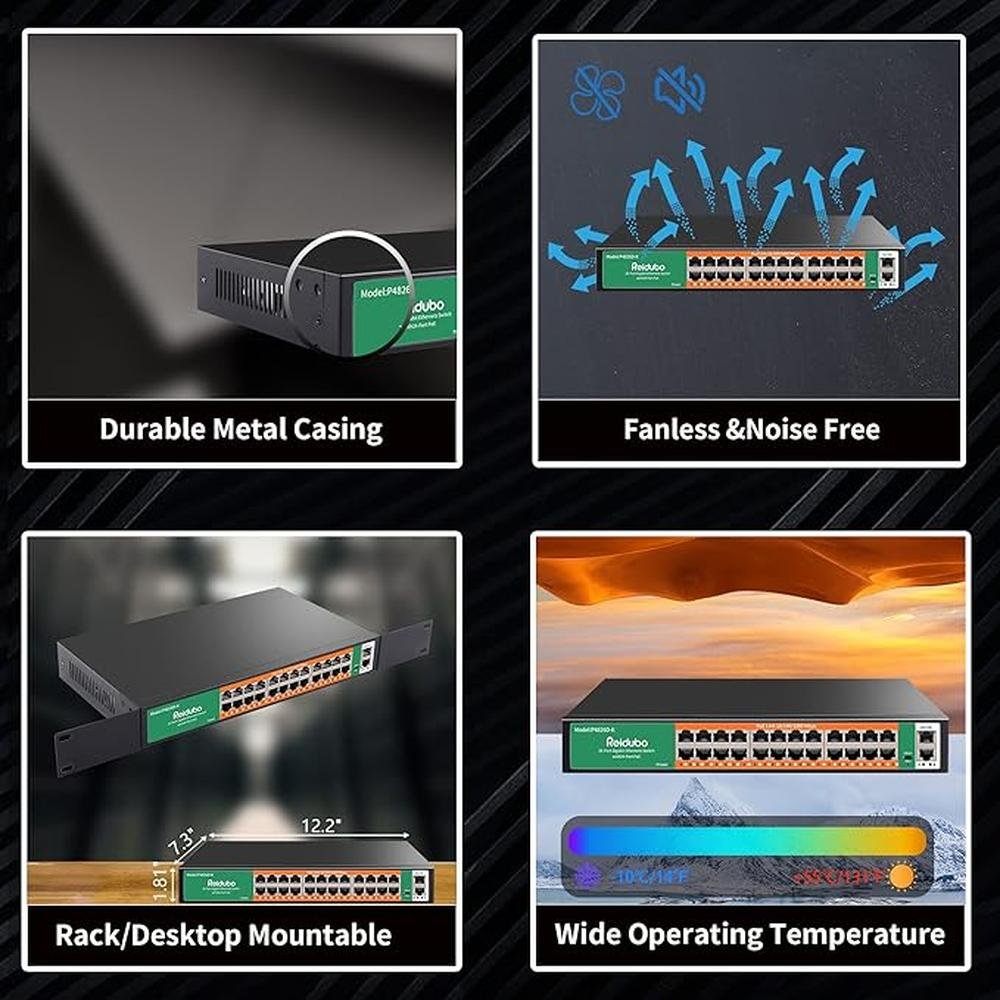 • Experience enhanced networking capabilities with our 24-port gigabit PoE switch, optimized for seamless connectivity and lightning-fast speeds, perfect for Indian users who demand high-performance capabilities.