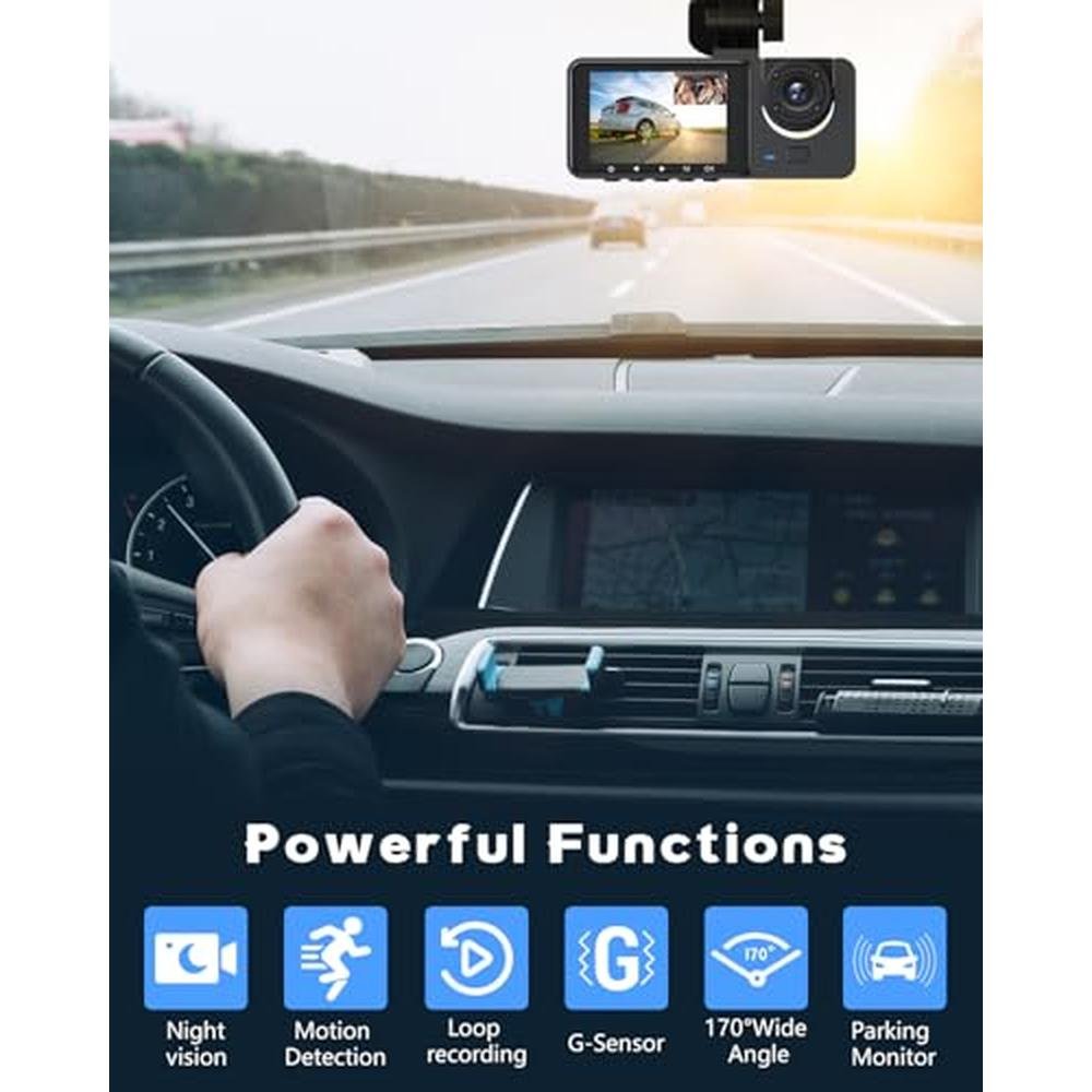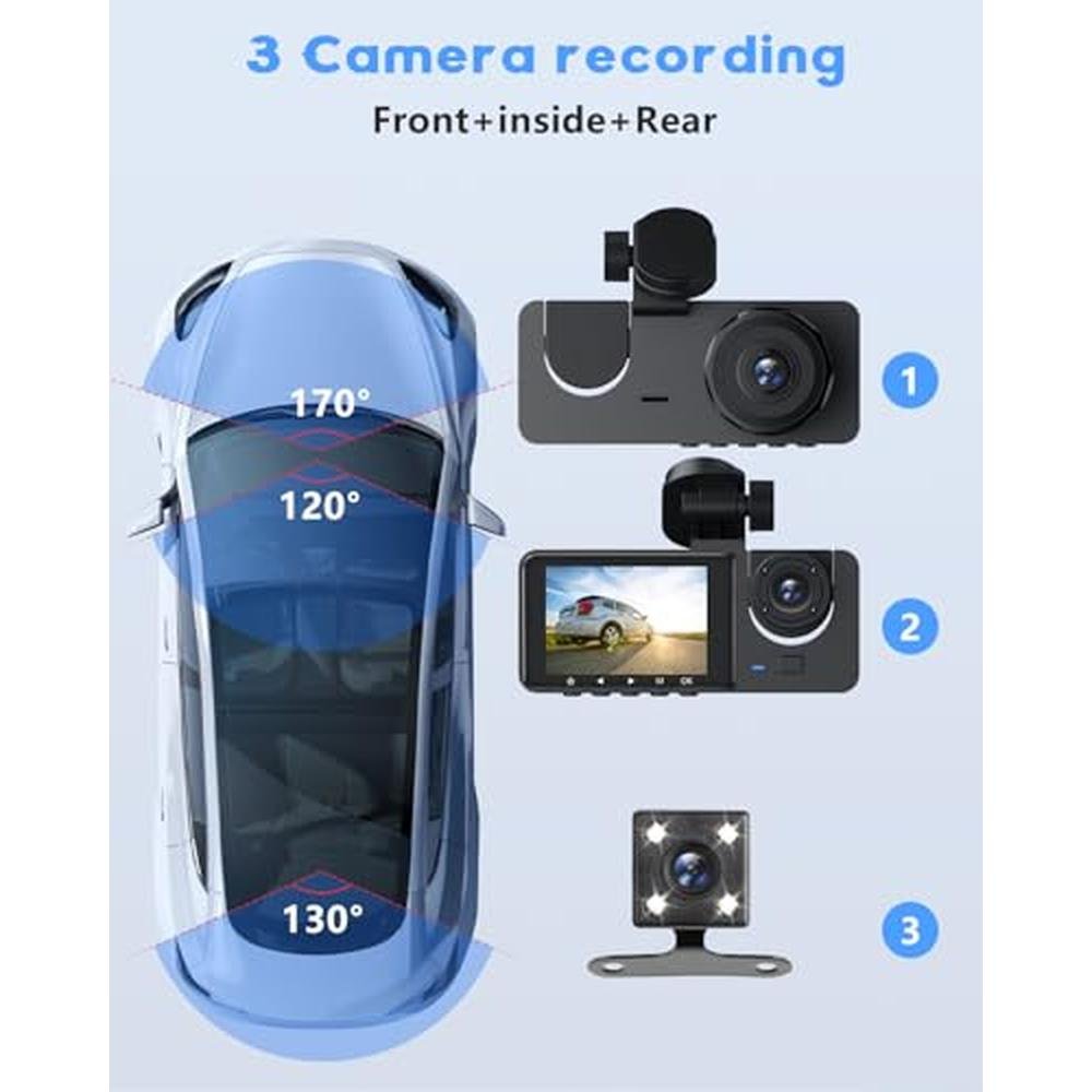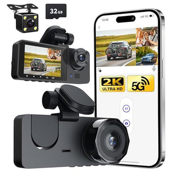 Indulge in unparalleled road safety and security with our top-rated 3 Channel Dash Cam, designed to provide a comprehensive view of the road ahead, behind, and inside your vehicle. As one of the best dash cam models on the market, our device offers stunning 2K+1080P+1080P resolution, capturing every detail with clarity. Whether you're a professional driver, such as an Uber driver, or simply looking for a reliable dash cam under $200, our product is an excellent choice. With features like WiFi & APP control, loop recording, WDR, and night vision, you can rest assured that you're protected on the road, 24/7. The included 32GB card and 24H parking monitor ensure that you have a record of any incident, no matter the time of day.