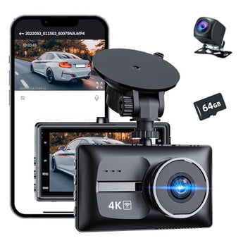 Indulge in the ultimate driving experience with our premium 4K Car Cameras Dash Cam, expertly designed to capture every moment on the road with unparalleled clarity. As a superior car dash camera, it boasts dual 4K+1080P resolution, providing a comprehensive view of the road ahead and behind. Equipped with a 64GB memory card, 24-hour parking monitor, and 170-degree wide-angle lens, this sophisticated mini car camera is perfect for daily driving and parking surveillance. The 3-inch IPS screen allows for effortless playback and menu navigation, while WDR night vision and G-sensor technology ensure that every moment is captured, even in low-light conditions. With its refined design and advanced features, this top-tier car camera is the epitome of high-end driving technology.