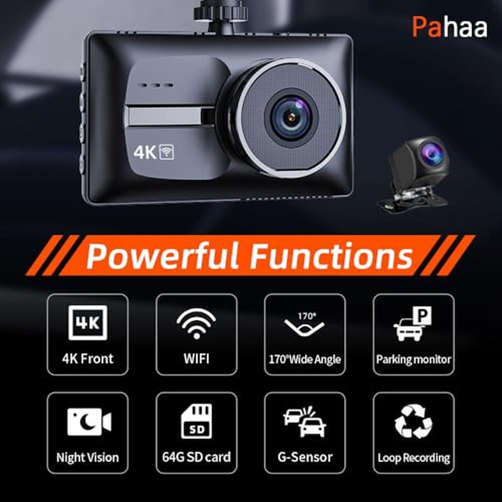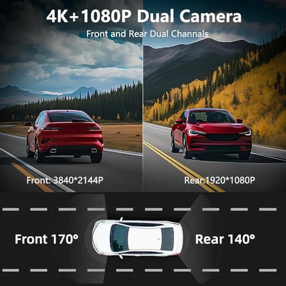 Car Dash | 4K Car Cameras Dash Cam Front and Rear 4K+1080P Dual Dash Camera | 64GB Card and 24h Parking Monitor