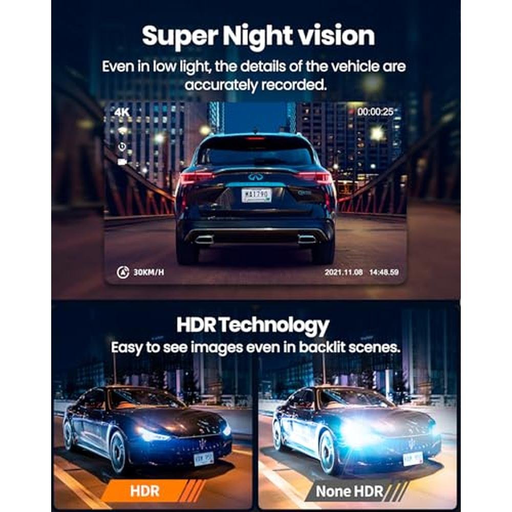 4K Dash Cam Front and Rear | Premium Dash Camera with WiFi, GPS, and HDR Night Vision | Ultimate In-Car Surveillance